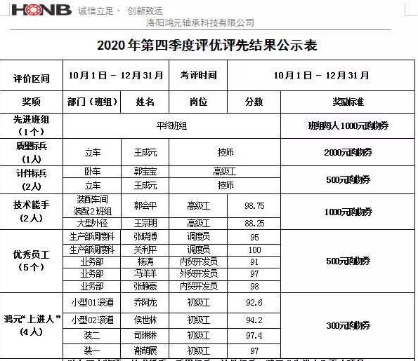 洛陽鴻元軸承2020年年度評(píng)優(yōu)評(píng)先表彰
